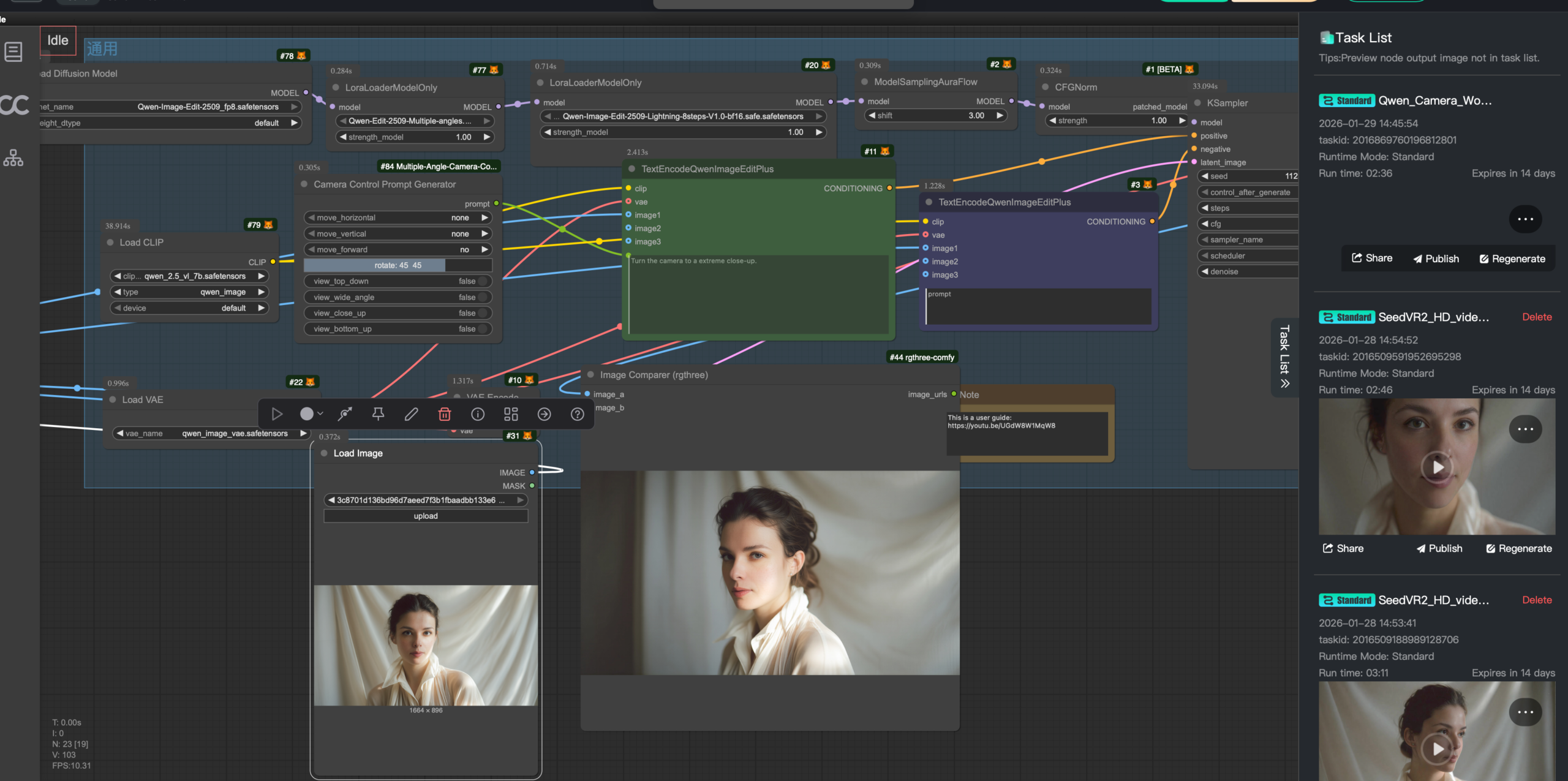 The workflow was developed in stages, prioritizing character identity and lighting control. A fixed base image defined the visual style, while reference images of a real person were used to train a custom LoRA to anchor identity. Once consistency was achieved in still images, a Qwen-based workflow generated the first and last frames to ensure temporal coherence, and any identity drift was corrected by reprocessing those frames through a Wan image workflow using the identity LoRA.